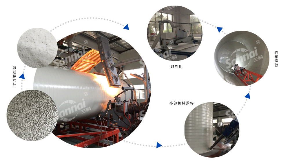 采用擠出纏繞無焊縫機(jī)組,自動化焊接技術(shù)及生產(chǎn)裝備